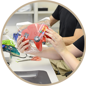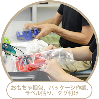 現在、利用者様に従事してもらっているのは動画・イラスト・デザインの作成、DVD・ゲームなどの動作チェック、おもちゃなどの袋詰めや内職業、パソコンや機械などの解体作業などです。それらが好きな人、興味を持っている人にはとてもやりがいのある環境です。